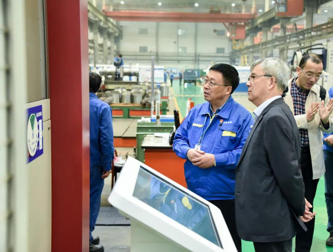 在戴繼雙的陪同下,褚健等人實地參觀了企業(yè)展廳及遠程監(jiān)測、故障診斷中心轉(zhuǎn)子車間、定子車間、總裝車間及核電公司等。戴繼雙向褚健介紹了沈鼓集團企業(yè)改革、自主創(chuàng)新、典型產(chǎn)品、市場業(yè)績等情況。