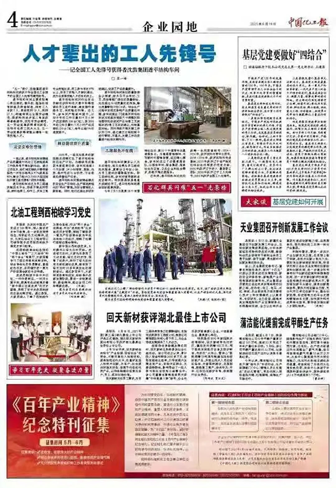 6月18日,《中國(guó)化工報(bào)》報(bào)道了全國(guó)工人先鋒號(hào)獲得者——沈鼓集團(tuán)結(jié)構(gòu)車間事跡。