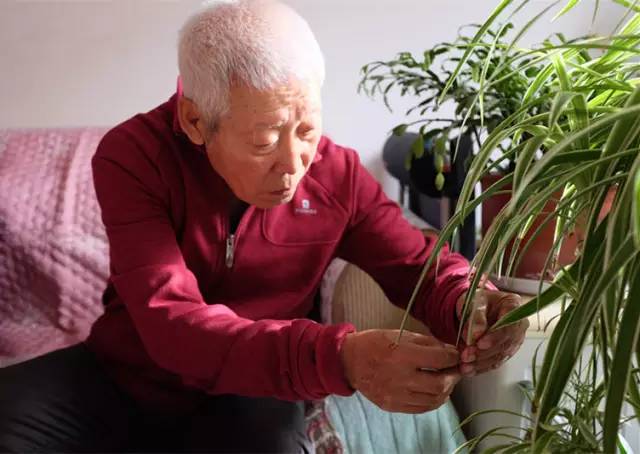 七十平的房間,不大,收拾得干凈利落,向陽的客廳種滿花花草草,屋里的家具,墻上的壁燈,都由八十二歲的王春香師傅親手打造。