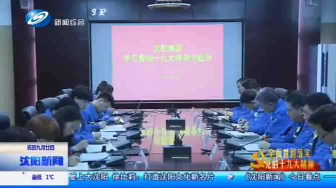 11月12日,沈陽廣播電視臺《沈陽新聞》在頭條位置報道了沈鼓集團組織學(xué)習(xí)貫徹十九大精神專題會。會上中共十九大代表,透平設(shè)計院副總工程師姜妍向與會人員認(rèn)真?zhèn)鬟_(dá)了十九大精神——
