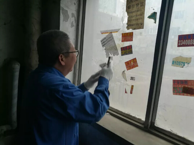 黨員們不畏臟累,將草叢中、灌木中的塑料袋、廢紙、廚余垃圾等垃圾徹底清理。搬除了占道和有礙瞻觀的堆放物品,將居民單元門,運(yùn)動(dòng)器材,墻面粘貼的小廣告逐一清除。