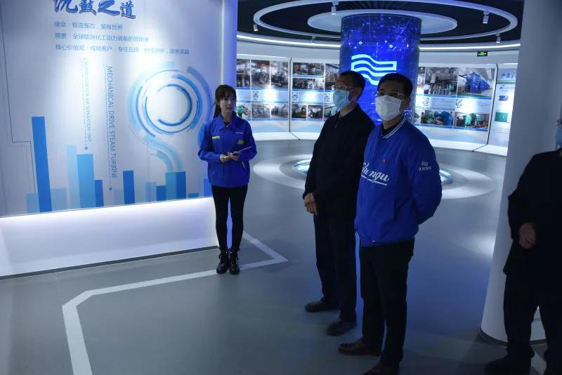 在生產(chǎn)車間韓曉軍一行實(shí)地了解了沈鼓集團(tuán)制造能力。