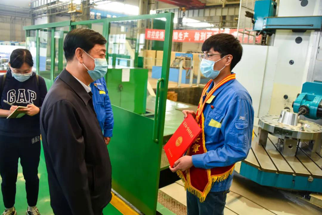 4月30日上午,沈陽市總工會主席顧少清一行蒞臨沈鼓集團,為獲得2020年省、市五一勞動獎的沈鼓人佩帶獎章、頒發(fā)證書,集團黨委書記、董事長戴繼雙,工會主席王鐵夫陪同。