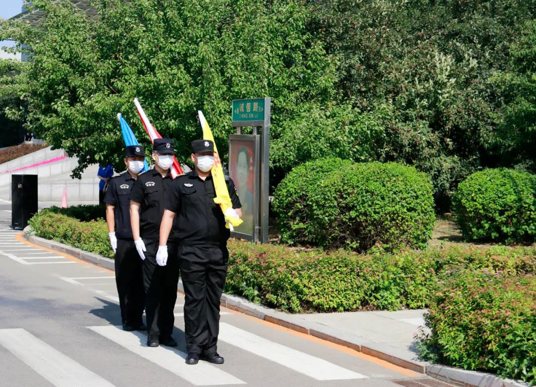 實(shí)業(yè)總公司安保事業(yè)部員工護(hù)送國旗入場。
