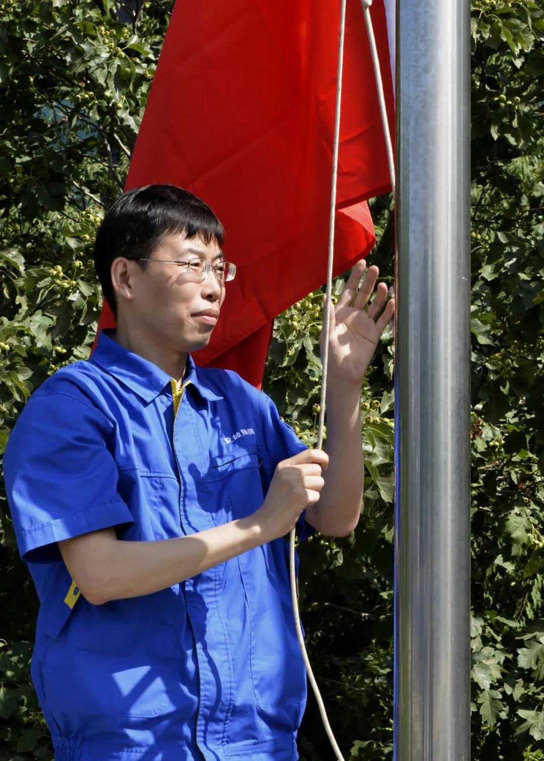 2019年市國資委優(yōu)秀共產(chǎn)黨員、研究院氣動(dòng)二室室主任張鵬剛擔(dān)任升旗手。